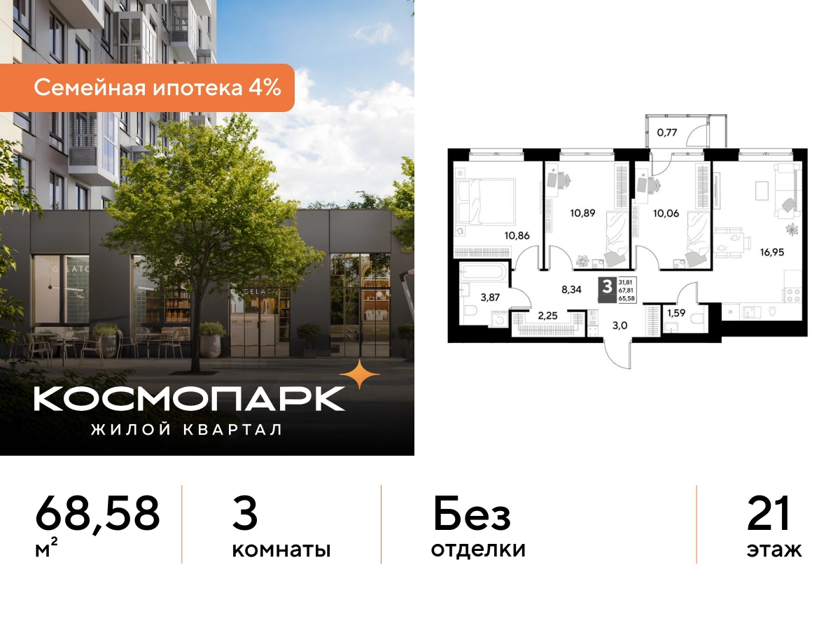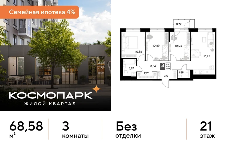 Продается 3-комнатная квартира № 349 по адресу: Калужская область, Калуга. Общая площадь квартиры - 68.58 кв. м., этаж 21 из 25, секция 2. Тип проекта, по которому построен дом - монолит, компания-застройщик - DOGMA, ООО СЗ Д-Финанс. Стоимость квартиры - 8469630 Р. Срок сдачи - 1 квартал 2027. Более подробная информация по телефону. <br><br> <br><br> ВЫГОДНЫЕ УСЛОВИЯ: <br><br> При покупке квартиры в ипотеку мы поможем правильно оформить заявку и подберем самые выгодные условия по ставке и первоначальному взносу. <br><br> • Выгодные ипотечные ставки - семейная ипотека 4%.* <br><br> • Рассрочка без первоначального взноса! Оформление на 1 год. <br><br> <br><br> Космопарк - уютный квартал комфорт-класса на левом берегу Оки. Расположен в развитом Ленинском районе Калуги, недалеко от центра города. Вокруг - живописные парки, музеи и чистые пляжи. <br><br> <br><br> ПРЕИМУЩЕСТВА: <br><br> • Квартиры с видом на реку Оку <br><br> • Разнообразные функциональные планировки <br><br> • Потолки от 2,65 м <br><br> • Умный дом с IP-домофонией <br><br> • Закрытые дворы с всесезонным озеленением <br><br> • Безопасная и безбарьерная среда <br><br> • Кладовые с прямым доступом на лифте <br><br> • Наземный паркинг на 1500 машино-мест <br><br> • Собственный комьюнити-центр <br><br> • Коммерческие помещения на первых этажах <br><br> • 4 минуты до ТЦ "Салтыковский" <br><br> • Рядом школа и детский сад <br><br> <br><br> Сочетание городского комфорта с природным окружением. Выгодное расположение, развитая социальная инфраструктура и отличная транспортная доступность. Квартира от застройщика. <br><br> <br><br> *СЕМЕЙНАЯ ИПОТЕКА: <br><br> - Ставка 4% на весь срок кредита <br><br> - ПСК (полная стоимость кредита) от 6,302% до 24,633% годовых. <br><br> - Срок кредита — от 5 до 30 лет. <br><br> - Минимальный первоначальный взнос — от 20,01%. <br><br> - Досрочное погашение кредита возможно в любой момент без штрафов. <br><br> - Стоимость квартиры фиксируется на весь срок кредитования. <br><br>О застройщике