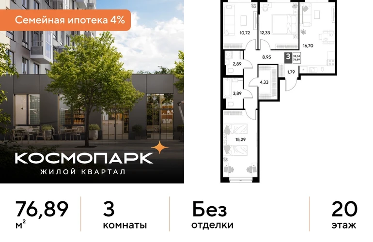 Продается 3-комнатная квартира № 339 по адресу: Калужская область, Калуга. Общая площадь квартиры - 76.89 кв. м., этаж 20 из 25, секция 2. Тип проекта, по которому построен дом - монолит, компания-застройщик - DOGMA, ООО СЗ Д-Финанс. Стоимость квартиры - 9234489 Р. Срок сдачи - 1 квартал 2027. Более подробная информация по телефону. <br><br> <br><br> ВЫГОДНЫЕ УСЛОВИЯ: <br><br> При покупке квартиры в ипотеку мы поможем правильно оформить заявку и подберем самые выгодные условия по ставке и первоначальному взносу. <br><br> • Выгодные ипотечные ставки - семейная ипотека 4%.* <br><br> • Рассрочка без первоначального взноса! Оформление на 1 год. <br><br> <br><br> Космопарк - уютный квартал комфорт-класса на левом берегу Оки. Расположен в развитом Ленинском районе Калуги, недалеко от центра города. Вокруг - живописные парки, музеи и чистые пляжи. <br><br> <br><br> ПРЕИМУЩЕСТВА: <br><br> • Квартиры с видом на реку Оку <br><br> • Разнообразные функциональные планировки <br><br> • Потолки от 2,65 м <br><br> • Умный дом с IP-домофонией <br><br> • Закрытые дворы с всесезонным озеленением <br><br> • Безопасная и безбарьерная среда <br><br> • Кладовые с прямым доступом на лифте <br><br> • Наземный паркинг на 1500 машино-мест <br><br> • Собственный комьюнити-центр <br><br> • Коммерческие помещения на первых этажах <br><br> • 4 минуты до ТЦ "Салтыковский" <br><br> • Рядом школа и детский сад <br><br> <br><br> Сочетание городского комфорта с природным окружением. Выгодное расположение, развитая социальная инфраструктура и отличная транспортная доступность. Квартира от застройщика. <br><br> <br><br> *СЕМЕЙНАЯ ИПОТЕКА: <br><br> - Ставка 4% на весь срок кредита <br><br> - ПСК (полная стоимость кредита) от 6,302% до 24,633% годовых. <br><br> - Срок кредита — от 5 до 30 лет. <br><br> - Минимальный первоначальный взнос — от 20,01%. <br><br> - Досрочное погашение кредита возможно в любой момент без штрафов. <br><br> - Стоимость квартиры фиксируется на весь срок кредитования. <br><br>О застройщике