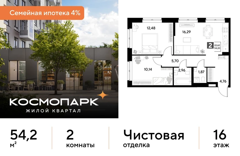 Продается 2-комнатная квартира № 119 по адресу: Калужская область, Калуга. Общая площадь квартиры - 54.20 кв. м., этаж 16 из 25, секция 1. Тип проекта, по которому построен дом - монолит, компания-застройщик - DOGMA, ООО СЗ Д-Финанс. Стоимость квартиры - 9419960 Р. Срок сдачи - 1 квартал 2027. Более подробная информация по телефону. <br><br> <br><br> ВЫГОДНЫЕ УСЛОВИЯ: <br><br> При покупке квартиры в ипотеку мы поможем правильно оформить заявку и подберем самые выгодные условия по ставке и первоначальному взносу. <br><br> • Выгодные ипотечные ставки - семейная ипотека 4%.* <br><br> • Рассрочка без первоначального взноса! Оформление на 1 год. <br><br> <br><br> Космопарк - уютный квартал комфорт-класса на левом берегу Оки. Расположен в развитом Ленинском районе Калуги, недалеко от центра города. Вокруг - живописные парки, музеи и чистые пляжи. <br><br> <br><br> ПРЕИМУЩЕСТВА: <br><br> • Квартиры с видом на реку Оку <br><br> • Разнообразные функциональные планировки <br><br> • Потолки от 2,65 м <br><br> • Умный дом с IP-домофонией <br><br> • Закрытые дворы с всесезонным озеленением <br><br> • Безопасная и безбарьерная среда <br><br> • Кладовые с прямым доступом на лифте <br><br> • Наземный паркинг на 1500 машино-мест <br><br> • Собственный комьюнити-центр <br><br> • Коммерческие помещения на первых этажах <br><br> • 4 минуты до ТЦ "Салтыковский" <br><br> • Рядом школа и детский сад <br><br> <br><br> Сочетание городского комфорта с природным окружением. Выгодное расположение, развитая социальная инфраструктура и отличная транспортная доступность. Квартира от застройщика. <br><br> <br><br> *СЕМЕЙНАЯ ИПОТЕКА: <br><br> - Ставка 4% на весь срок кредита <br><br> - ПСК (полная стоимость кредита) от 6,302% до 24,633% годовых. <br><br> - Срок кредита — от 5 до 30 лет. <br><br> - Минимальный первоначальный взнос — от 20,01%. <br><br> - Досрочное погашение кредита возможно в любой момент без штрафов. <br><br> - Стоимость квартиры фиксируется на весь срок кредитования. <br><br>О застройщике