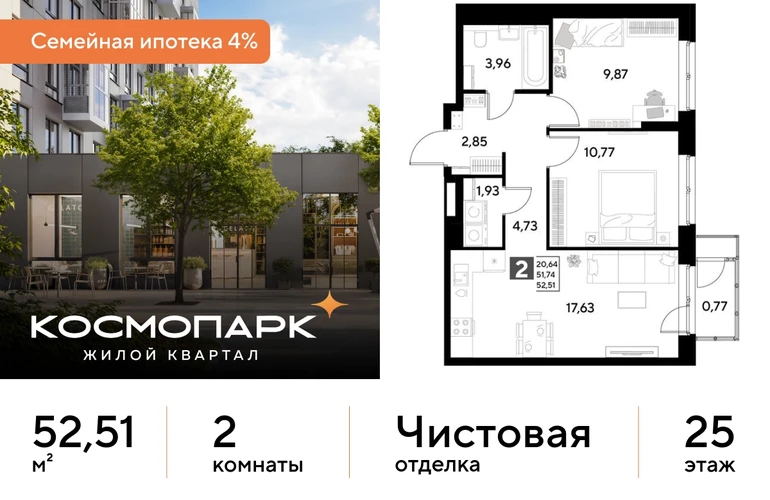 Продается 2-комнатная квартира № 186 по адресу: Калужская область, Калуга. Общая площадь квартиры - 52.51 кв. м., этаж 25 из 25, секция 1. Тип проекта, по которому построен дом - монолит, компания-застройщик - DOGMA, ООО СЗ Д-Финанс. Стоимость квартиры - 9787864 Р. Срок сдачи - 1 квартал 2027. Более подробная информация по телефону. <br><br> <br><br> ВЫГОДНЫЕ УСЛОВИЯ: <br><br> При покупке квартиры в ипотеку мы поможем правильно оформить заявку и подберем самые выгодные условия по ставке и первоначальному взносу. <br><br> • Выгодные ипотечные ставки - семейная ипотека 4%.* <br><br> • Рассрочка без первоначального взноса! Оформление на 1 год. <br><br> <br><br> Космопарк - уютный квартал комфорт-класса на левом берегу Оки. Расположен в развитом Ленинском районе Калуги, недалеко от центра города. Вокруг - живописные парки, музеи и чистые пляжи. <br><br> <br><br> ПРЕИМУЩЕСТВА: <br><br> • Квартиры с видом на реку Оку <br><br> • Разнообразные функциональные планировки <br><br> • Потолки от 2,65 м <br><br> • Умный дом с IP-домофонией <br><br> • Закрытые дворы с всесезонным озеленением <br><br> • Безопасная и безбарьерная среда <br><br> • Кладовые с прямым доступом на лифте <br><br> • Наземный паркинг на 1500 машино-мест <br><br> • Собственный комьюнити-центр <br><br> • Коммерческие помещения на первых этажах <br><br> • 4 минуты до ТЦ "Салтыковский" <br><br> • Рядом школа и детский сад <br><br> <br><br> Сочетание городского комфорта с природным окружением. Выгодное расположение, развитая социальная инфраструктура и отличная транспортная доступность. Квартира от застройщика. <br><br> <br><br> *СЕМЕЙНАЯ ИПОТЕКА: <br><br> - Ставка 4% на весь срок кредита <br><br> - ПСК (полная стоимость кредита) от 6,302% до 24,633% годовых. <br><br> - Срок кредита — от 5 до 30 лет. <br><br> - Минимальный первоначальный взнос — от 20,01%. <br><br> - Досрочное погашение кредита возможно в любой момент без штрафов. <br><br> - Стоимость квартиры фиксируется на весь срок кредитования. <br><br>О застройщике