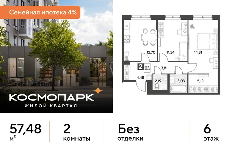 Продается 2-комнатная квартира № 230 по адресу: Калужская область, Калуга. Общая площадь квартиры - 57.48 кв. м., этаж 6 из 25, секция 2. Тип проекта, по которому построен дом - монолит, компания-застройщик - DOGMA, ООО СЗ Д-Финанс. Стоимость квартиры - 7236732 Р. Срок сдачи - 1 квартал 2027. Более подробная информация по телефону. <br><br> <br><br> ВЫГОДНЫЕ УСЛОВИЯ: <br><br> При покупке квартиры в ипотеку мы поможем правильно оформить заявку и подберем самые выгодные условия по ставке и первоначальному взносу. <br><br> • Выгодные ипотечные ставки - семейная ипотека 4%.* <br><br> • Рассрочка без первоначального взноса! Оформление на 1 год. <br><br> <br><br> Космопарк - уютный квартал комфорт-класса на левом берегу Оки. Расположен в развитом Ленинском районе Калуги, недалеко от центра города. Вокруг - живописные парки, музеи и чистые пляжи. <br><br> <br><br> ПРЕИМУЩЕСТВА: <br><br> • Квартиры с видом на реку Оку <br><br> • Разнообразные функциональные планировки <br><br> • Потолки от 2,65 м <br><br> • Умный дом с IP-домофонией <br><br> • Закрытые дворы с всесезонным озеленением <br><br> • Безопасная и безбарьерная среда <br><br> • Кладовые с прямым доступом на лифте <br><br> • Наземный паркинг на 1500 машино-мест <br><br> • Собственный комьюнити-центр <br><br> • Коммерческие помещения на первых этажах <br><br> • 4 минуты до ТЦ "Салтыковский" <br><br> • Рядом школа и детский сад <br><br> <br><br> Сочетание городского комфорта с природным окружением. Выгодное расположение, развитая социальная инфраструктура и отличная транспортная доступность. Квартира от застройщика. <br><br> <br><br> *СЕМЕЙНАЯ ИПОТЕКА: <br><br> - Ставка 4% на весь срок кредита <br><br> - ПСК (полная стоимость кредита) от 6,302% до 24,633% годовых. <br><br> - Срок кредита — от 5 до 30 лет. <br><br> - Минимальный первоначальный взнос — от 20,01%. <br><br> - Досрочное погашение кредита возможно в любой момент без штрафов. <br><br> - Стоимость квартиры фиксируется на весь срок кредитования. <br><br>О застройщике