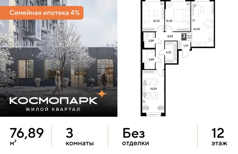 Продается 3-комнатная квартира № 275 по адресу: Калужская область, Калуга. Общая площадь квартиры - 76.89 кв. м., этаж 12 из 25, секция 2. Тип проекта, по которому построен дом - монолит, компания-застройщик - DOGMA, ООО СЗ Д-Финанс. Стоимость квартиры - 9103776 Р. Срок сдачи - 1 квартал 2027. Более подробная информация по телефону. <br><br> <br><br> ВЫГОДНЫЕ УСЛОВИЯ: <br><br> При покупке квартиры в ипотеку мы поможем правильно оформить заявку и подберем самые выгодные условия по ставке и первоначальному взносу. <br><br> • Выгодные ипотечные ставки - семейная ипотека 4%.* <br><br> • Рассрочка без первоначального взноса! Оформление на 1 год. <br><br> <br><br> Космопарк - уютный квартал комфорт-класса на левом берегу Оки. Расположен в развитом Ленинском районе Калуги, недалеко от центра города. Вокруг - живописные парки, музеи и чистые пляжи. <br><br> <br><br> ПРЕИМУЩЕСТВА: <br><br> • Квартиры с видом на реку Оку <br><br> • Разнообразные функциональные планировки <br><br> • Потолки от 2,65 м <br><br> • Умный дом с IP-домофонией <br><br> • Закрытые дворы с всесезонным озеленением <br><br> • Безопасная и безбарьерная среда <br><br> • Кладовые с прямым доступом на лифте <br><br> • Наземный паркинг на 1500 машино-мест <br><br> • Собственный комьюнити-центр <br><br> • Коммерческие помещения на первых этажах <br><br> • 4 минуты до ТЦ "Салтыковский" <br><br> • Рядом школа и детский сад <br><br> <br><br> Сочетание городского комфорта с природным окружением. Выгодное расположение, развитая социальная инфраструктура и отличная транспортная доступность. Квартира от застройщика. <br><br> <br><br> *СЕМЕЙНАЯ ИПОТЕКА: <br><br> - Ставка 4% на весь срок кредита <br><br> - ПСК (полная стоимость кредита) от 6,302% до 24,633% годовых. <br><br> - Срок кредита — от 5 до 30 лет. <br><br> - Минимальный первоначальный взнос — от 20,01%. <br><br> - Досрочное погашение кредита возможно в любой момент без штрафов. <br><br> - Стоимость квартиры фиксируется на весь срок кредитования. <br><br>О застройщике