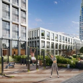 Более 75 % территории отдано зелёным зонам с променадом, аллеями и веломаршрутами. В закрытом дворе обустроены беговые дорожки, спортивные и детские площадки, арт-инсталляции и зоны для барбекю. На стилобате располагаются подземный паркинг, кладовые помещения и авторский детский сад VERY KIDS с инновационной образовательной программой.